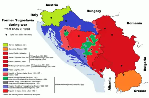 - ↑ a b RADAN, Peter. The break-up of Yugoslavia and international law. [s.l.]: Routledge, 2002. Dostupné online. ISBN 978-0-415-25352-9. S. 192.)