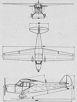 Celodřevěné křídlo se dvěma průběžnými skříňovými nosníky bylo potaženo překližkou a k prohnutému trupu (1. prototyp) bylo kloubově připojeno čtyřmi svorníky. Druhý prototyp měl trup rovný, aerodynamicky příznivější a lomený čelní štít.[5] Trup příhradové konstrukce čtyřhranného průřezu byl svařen z ocelových trubek a potažen plátnem. V kabině byla 2 sedadla umístěná vedle sebe, za nimiž byl prostor pro zavazadla. Celodřevěné, s potahem z překližky, byly i ocasní plochy (stabilizační i kýlová plocha). Dvoukolový podvozek měl kola uchycena na výkyvně odpérovaných konzolách a kola byla buď nekapotovaná (prototyp OK-AMU) a nebo opatřena aerodynamickými kryty (prototyp OK-AHZ). Byl brzděn bubnovými, mechanickými brzdami. Dvojité volantové řízení prvního prototypu bylo možno nahradit řídícími pákami. Pedálové, nožní řízení ovládalo kormidla táhly a lany.[3]