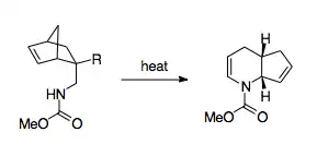 Dalším způsobem překonání termodynamické bariéry je propojení reakce s uvolněním napětí na cyklopropanovém kruhu, které dovoluje výrazně snížit reakční teplotu.[28][34]