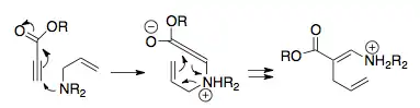 - ↑ G. R. Cook; N. S. Barta; J. R. Stille. Lewis acid-promoted 3-aza-Cope rearrangement of N-alkyl-N-allyl enamines. The Journal of Organic Chemistry. 1992, s. 461–467. doi:10.1021/jo00028a016.