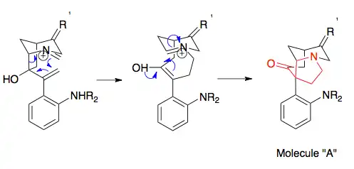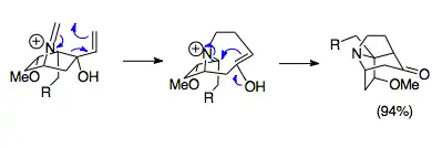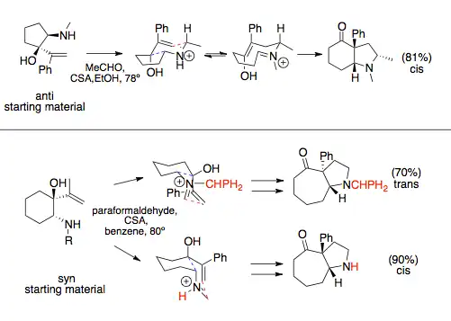 Pokud sterické efekty umožní atak pouze na jednom konkrétním uhlíku, tak nastane přímý vnitromolekulární atak na dusík; taková reakce probíhá například při syntéze strychninu.[15][23]