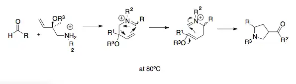 - ↑ a b c d L. E. Overman; M. Kakimoto; M. E. Okazaki; G. P. Meier. Synthesis applications of aza-Cope rearrangements. 11. Carbon-carbon bond formation under mild conditions via tandem cationic aza-Cope rearrangement-Mannich reactions. A convenient synthesis of polysubstituted pyrrolidines. Journal of the American Chemical Society. 1983, s. 6622–6629. doi:10.1021/ja00360a013.