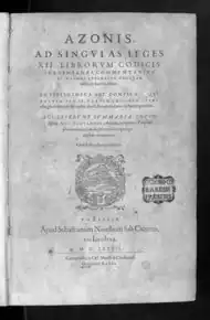 Azo napsal glosy na všechny části Corpus iuris civilis. Jeho nejvlivnější prací je Summa ad Codicem, komentář k civilnímu právu uspořádanému podle Justiniánova zákoníku. Summa ad Codicem a Apparatus ad codicem, shromážděné jeho žákem Alessandro de Santo Aegidio a doplněné Hugolinem a Odofredem, vytvořily metodický výklad římského práva. Jako jeden z mála středověkých právních textů v latině byla Summa ad Codicem přeložena do staré francouzštiny. Dalšími významnými Azovými spisy jsou Lectura, Gloassae nebo Brocarda.