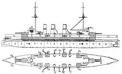 | Pancíř | až 178mm boky 152mm barbety a věže až 152mm kasematy až 63mm paluba až 356mm velitelská věž |