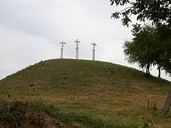 Na uměle vytvořených pahorcích u hřbitova Malý Báb je Kalvárie se třemi kříži.