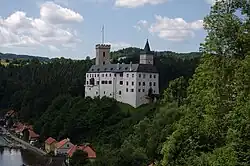 - Roštejn – na hradě, který prý na přání hradního pána postavil sám ďábel, se zjevovala Bílá paní rožmberská (Perchta).[4]