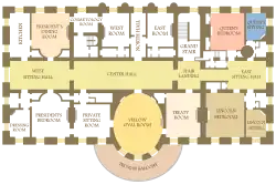 Nejznámějším pokojem je Oválná pracovna – oficiální pracovna prezidenta USA.