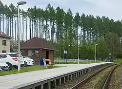 Zastávka ležící na jednokolejné trati je vybavena jednostranným vnějším nástupištěm o délce 90 m a s nástupní hranou ve výšce 550 mm nad temenem kolejnice. V zastávce je elektrické osvětlení ovládané automaticky časovým spínačem a fotobuňkou. Cestujícím slouží dřevěný přístřešek se základním vybavením (cedule s názvem zastávky, vývěska s jízdním řádem, odpadkový koš).[2] Přístřešek byl vybudován v roce 2009, kdy nahradil původní dřevěnou čekárnu, která pocházela z roku 1946.[3]