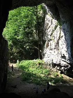 Skalní stěna nad vstupem do jeskyně Býčí skála | |