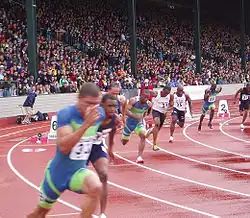 Běh na 200 m je nejvíce podobný klasickému starořeckému běhu na jeden stadión. V USA se závod na 200 m běhal až do roku 1960 na přímém úseku. Závody se startem v oblouku se běhaly jen v Evropě a na olympiádě. Časy dosažené na přímé 200 m dráze byly o 0,3 až 0,4 s. rychlejší než závody s obloukem.