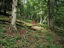 ejvýše položené části chráněného území porůstají habrové javořiny s javorem klenem (Acer pseudoplatanus) a javorem mléčem (Acer platanoides). Na balvanitém východním svahu javořiny přecházejí v bažankovou jaseninu, kde dominuje jasan ztepilý (Fraxinus excelsior) a doplňuje jej buk lesní a jilm horský (Ulmus glabra). Pro podrost javořin je typický česnáček lékařský (Alliaria petiolata) a kakost smrdutý (Geranium rebertianum). Pitulník horský (Galeobdolon montanum) roste jak v javořinách, tak v jaseninách na východním svahu, kde se vyskytuje také kopřiva dvoudomá (Urtica dioica), pšeníčko rozkladité (Milium effusum) a dymnivka dutá (Corydalis cava).