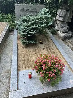 Je pohřben na Ústředním hřbitově v Brně, Čestný kruh, sk. 25e/hr. 7-8.