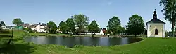 Charakteristickým pro obec je řada šesti menších rybníků ležící přímo v jejím jádru kaskádovitě za sebou. Poblíž jednoho z nich, ve středu obce, stojí kaple svatého Jana Nepomuckého z roku 1867. Obytná stavení jsou rozestavěná po obvodu a vesnice tak má uzavřený tvar, který vynikne při pohledu z výšky. Tato stavení obvykle mívají kromě obytné části také hospodářské prostory, stodolu, uprostřed dvorek a vzadu za domem („za humny“) zahradu.
