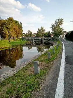 - Silniční most se sochami přes řeku Skalici (do Březnice pod názvem Vlčava).