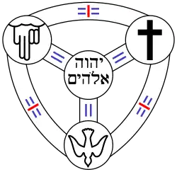 Shromáždění Jahveho jsou netrinitární a věří, že Otec je ve všem větší než Syn a že Duch svatý není roven Otci a není skutečnou osobou, ale je Boží „mocí“ nebo „charakterem“ v činnosti. Boha Otce označují jako „Jahve“.[59] Shromáždění Jahve a další skupiny s posvátným jménem obecně učí, že Kristus Syn byl prvním a prvotním Božím stvořením a byl použit ke stvoření všeho ostatního.[60] Věří, že Mesiáš, kterého nazývají „Jahšua“, „Ješua“ nebo „Jéšua“, zemřel za hříchy člověka a má být uctíván jako Pomazaný Pán, ale že Bůh Otec (Jahve) je Pravý Bůh, kterému nakonec slouží a kterého uctívají všichni „praví ctitelé“. Učí, že Otec je jediný věčný.[61]
