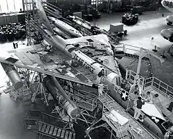 Convair B-58 Hustler byl americký strategický bombardér středního doletu, který byl vyvinut jako jedna z náhrad za letouny Boeing B-47 Stratojet. Konstrukce byla mimořádně náročná. Hustler byl první operační nadzvukový bombardér, který dosahoval rychlosti Mach 2.[2][3] Jeho posádka seděla v únikových kapslích. Letoun měl velké delta křídlo pod kterým byly zavěšeny čtyři motory, neměl vodorovné ocasní plochy a potah byl vícevrstvý. Neměl pumovnici, která by byla integrální součástí trupu. Místo toho měl pod trupem zavěšený aerodynamický kryt, v němž mohl nést výzbroj i přídavné zásobníky na pohonné hmoty. Za cenu odstranění jedné přídavné nádrže a kratšího doletu mohl nést až čtyři pumy.