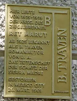 - ↑ Bruno Traven | životopis, informace o spisovateli | ČBDB.cz. www.cbdb.cz [online]. [cit. 2021-09-03]. Dostupné online.