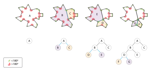 4. D je rozdělen na F a G, které jsou konvexní, tedy tvoří listy stromu