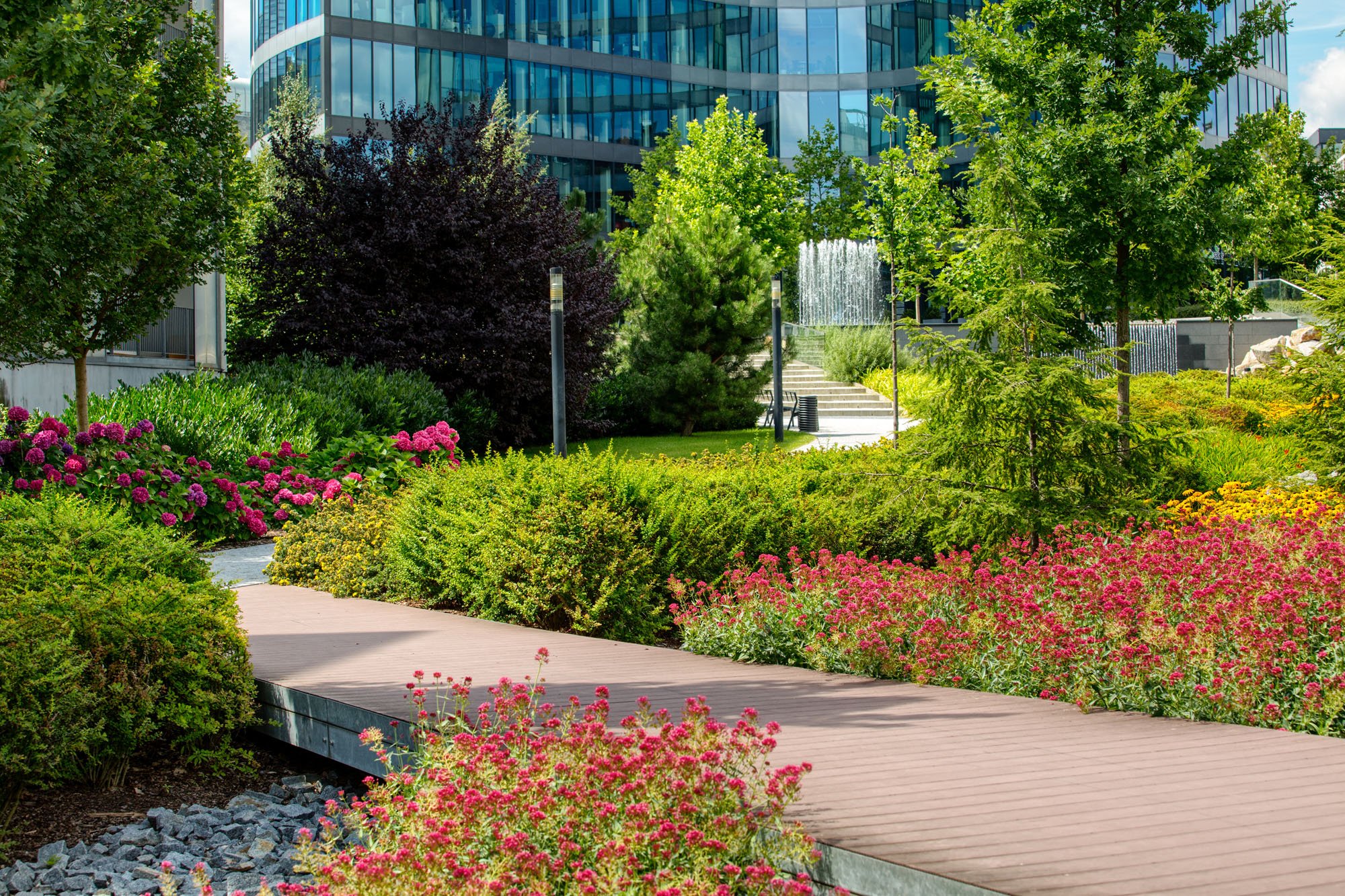 ![]() Baarův park, vpravo je kancelářský dům Filadelfie | |