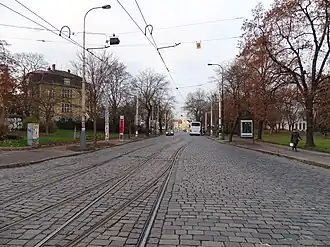 Od roku 1912 vede ulicí tramvajová trať Chotkovy sady – Špejchar, v současnosti jsou tu zastávky „Hradčanská (Badeniho)“ a „Chotkovy sady“.