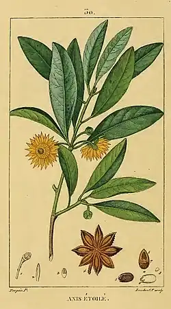 Badyáník pravý (Illicium verum) je stálezelený listnatý strom s jednoduchými listy a světlými žlutozelenými květy, dosahující výšky až 18 m. Plody jsou měchýřky uspořádané do tvaru osmicípé hvězdy. Rostlina poskytuje koření badyán.