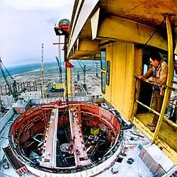 1. listopadu 1982 se konečně začal stavět třetí blok a 1. dubna 1984 následoval blok č. 4. Ke zvednutí těžkých komponent, zvláště pak tlakové nádoby reaktoru o hmotnosti 330 tun byl použit speciální a unikátní portálový jeřáb s nosností 380 tun. 76 metrů vysoký jeřáb byl navržen v Charkově a dodán na místo v srpnu 1984.[4] Ve většině ostatních identických jaderných elektráren byl ale použit výkonnější dánský jeřáb Krøll K-10000.