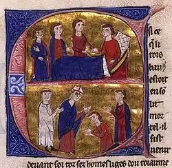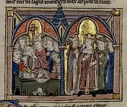 Smrt krále Almericha a Balduinova korunovace (středověká iluminace)