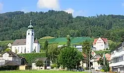 Hlavní silnice č. 13 na úpatí svahu rozděluje obec na dvě poloviny. Na východní straně se nachází stará čtvrť Mühlacker a nověji postavená průmyslová a bloková zástavba, která se táhne na východ až k železniční trati SBB. Východně od železniční trati Chur-Rorschach se nachází sportovní areál Riet a přírodní rezervace Höchstern. Dále na východ, v oblasti Mädern, která je zčásti vyhlášena jako záplavové území, se nacházejí farmy Lärchenhof, Erlenhof, Lindenhof, Sonnenhof a Rietmüli.