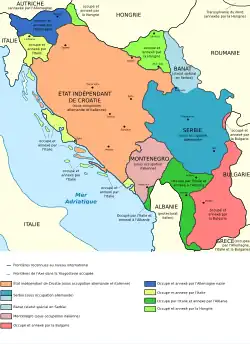 Invaze do Jugoslávie byla zahájena 6. dubna 1941 a skončila bezpodmínečnou kapitulací Jugoslávské královské armády 17. dubna. Okupované území Jugoslávského království bylo rozděleno na Nezávislý stát Chorvatsko ovládaný ustašovskými fašisty, loutkový srbský stát pod německou okupací a italský protektorát v Černé Hoře. Některá území Německo, Itálie, Maďarsko a Bulharsko připojily přímo ke svému území.