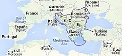 Typickými společnými znaky jsou postponovaný určitý člen (makedonsky водата "voda", arumunsky casele "domy", albánsky shtëpia "dům"), tvorba budoucího času pomocí slovesa chtít (makedonsky ќе видам "uvidím", arumunsky voi bere/va si beau "budu pít", albánsky do të jem "budu"), posesivní minulý čas (makedonsky имам видено "viděl jsem", arumunsky amu datâ "dal jsem"), absence infinitivu (makedonsky сакам да учам "chci se učit", albánsky diçka për të bërë "něco k udělání") a zdvojování zájmen u předmětu (v některých regionech s diferenčním značením předmětu, např. makedonsky ја видам (на) жената, arumunsky u vedzu (pi) muljerlju "vidím (tu) ženu").