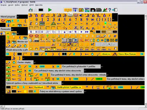 - ↑ Protože Začátečník je jenom okleštěný režim Pokročilý (obsahuje 2 první řádky ikonek z pokročilého a nejsou v něm dostupné některé funkce jako proměnné apod., dá se v něm v podstatě ovládat jenom postavička Baltíka), zabývá se následující text jenom pokročilým režimem.