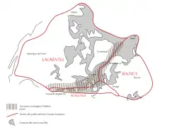 | Arktida | → | Nena | ↗ | ↘ | Západní Gondwana | → | Protolaurasie | ↗ | ↘ | Gondwana | ↗ | ↘ | Laurasie | → | Laurentie | → | Severní Amerika | |||||||
