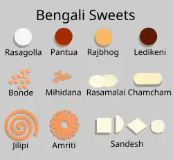 Příklady bangladéšských pokrmů a nápojů:[1][2]