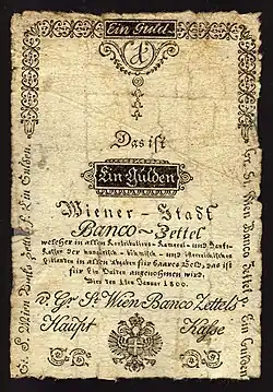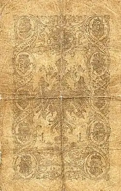 První oficiální „bankovka“, vydaná na státní náklady byla vydána v emisi k 1. lednu 1800.[zdroj?] Lidé však tehdy k novým kreditním, a tím pádem nehodnotným penězům neměli důvěru.