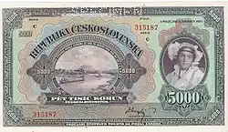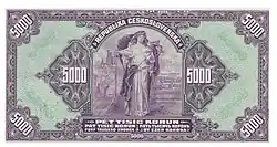 5000 Kč | 192 x 128 mm | 7. srpna 1919 | 15. dubna 1921 | 15. dubna 1919 | |