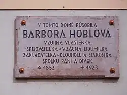 - ↑ a b ČESKÝ SVAZ ŽEN. Kdo byla Barbora Hoblová?. Mladá Boeslav: [s.n.], 2001.