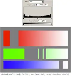 Histogram je měřítkem statistického popisu frekvenčního rozložení ve vztahu k výskytu frekvencí různých tříd barev. Třídy barev jsou určité oblasti v barevném prostoru. Každá třída barev v obrazu má svůj index, kterým se při výpočtu histogramu násobí. Pokud je v obraze zastoupena nejvíce modrá, neznamená to, že výsledný histogram bude odpovídat hlavně hodnotě modré barvy. Je to způsobeno tím, že lidské oko má pro různé barvy různou citlivost. Hodnoty pro jednotlivé barevné složky jsou proto obvykle stanoveny následujícím způsobem: Červená - 0,3; zelená - 0,59; modrá - 0,11.