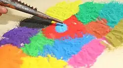 Z barevným pískem se vysypávají obrazce na zem, tzv. mandaly. Častěji se používá k tvorbě obrázku na předřazené samolepicí šablony. Jeho další využití je k dekoračním účelům, kdy se jím plní vázy a sklenice.