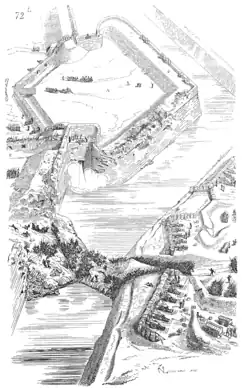 - uzavřený (směrem k pevnosti uzavřen vlastní zdí nebo hradbou, ke které přiléhá)