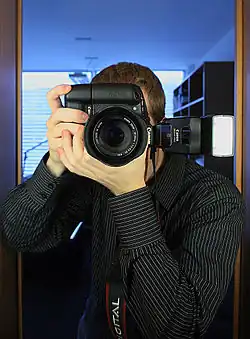 - Vertikální grip s vlastní spouští a dalších tlačítek usnadňuje fotografování na výšku, typicky při tvorbě portrétů.[2][1]