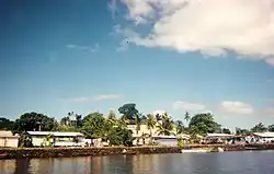 ![]() Domorodé chýše na ostrově (mezi 1890–1910) | |