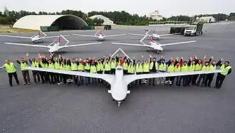 - Konstrukce: kompaktní trup s tlačnou vrtulí. Ocasní plochy jsou spojené do tvaru obráceného písmene V.
