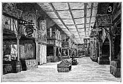 Na tomto dobročinném bazaru dámy z vyšší společnosti a představitelky církve prodávaly umělecké předměty a výtěžek šel na dobročinné účely. Prodejní hala byla postavena do vnitrobloku za vysokou kamennou zdí s branou jako dřevěná budova a byla nákladně vyzdobená. Pomocí divadelních dekorací byla představena ulice ve středověké Paříži.