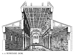 Raně křesťanské kostely, zejména v Itálii, přímo navazují na římské baziliky, které Římanům sloužily jako soudní síně a tržnice. Lodě byly často beze stropů, takže trámoví krovu bylo vidět.