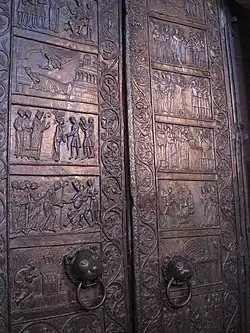 Významnou památkou jsou bronzové románské dveře s cyklem reliéfů s výjevy ze života sv. Vojtěcha. Byly vytvořeny kolem roku 1175 a jsou jedinečnou památkou svého druhu ve střední Evropě.