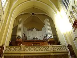 Velké varhany na hudebním kůru byly postaveny v letech 1946-1949, v pozdějších letech byly instalovány měděné píšťaly. Nástroj má 101 rejstříků rozdělených na 4 manuálové klaviatury (stupnice C-a3) a nožní klaviaturu (pedál stupnice C-f1). Jedná se o největší varhany v Polsku fungující s pneumatickým hracím a rejstříkovým traktem. Měchy jsou poháněny 2 elektrickými dmychadly. Varhany mají starožitný kalamářový mechanismus. Největší píšťaly velkých varhan jsou dlouhé asi 8 metrů. V roce 1956 byly v kněžišti postaveny boční varhany s 16 rejstříky, které jsou rozděleny na 2 manuálové klaviatury a pedál. Nástroj byl elektricky propojen s hracím stolem velkých varhan. Na velké varhany je možné hrát pomocí hracího stolu bočních varhan a naopak, a to na oba nástroje současně, stejně jako na jeden z nástrojů mohou hrát 2 osoby současně. Varhanní soubor velkých varhan a varhan v kněžišti tvoří nástroj se 117 rejstříky.