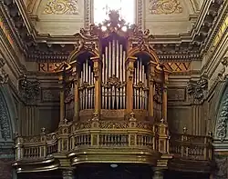 Na dřevěné kruchtě na protilehlé fasádě, zdobené zlacenými řezbami a sloupy malovanými imitací mramoru, se nacházejí historické píšťalové varhany, které postavili Celestino Testa a Giuseppe Noghel v letech 1747–1749, a které v roce 1767 téměř kompletně přestavěl Johann Conrad Werle. V průběhu 19. a 20. století byly několikrát upravovány a v letech 2002-2003 je filologicky restauroval Francesco Zanin.