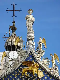 Bazilika sv. Marka, detail sochy sv. Marka a benátského lva na průčelí