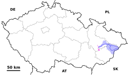 | do Moravy u Tovačova 49°25′6″ s. š., 17°19′16″ v. d. 195 m n. m. | |