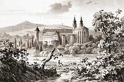 Hronský Beňadik na litografii z poloviny 19. století
